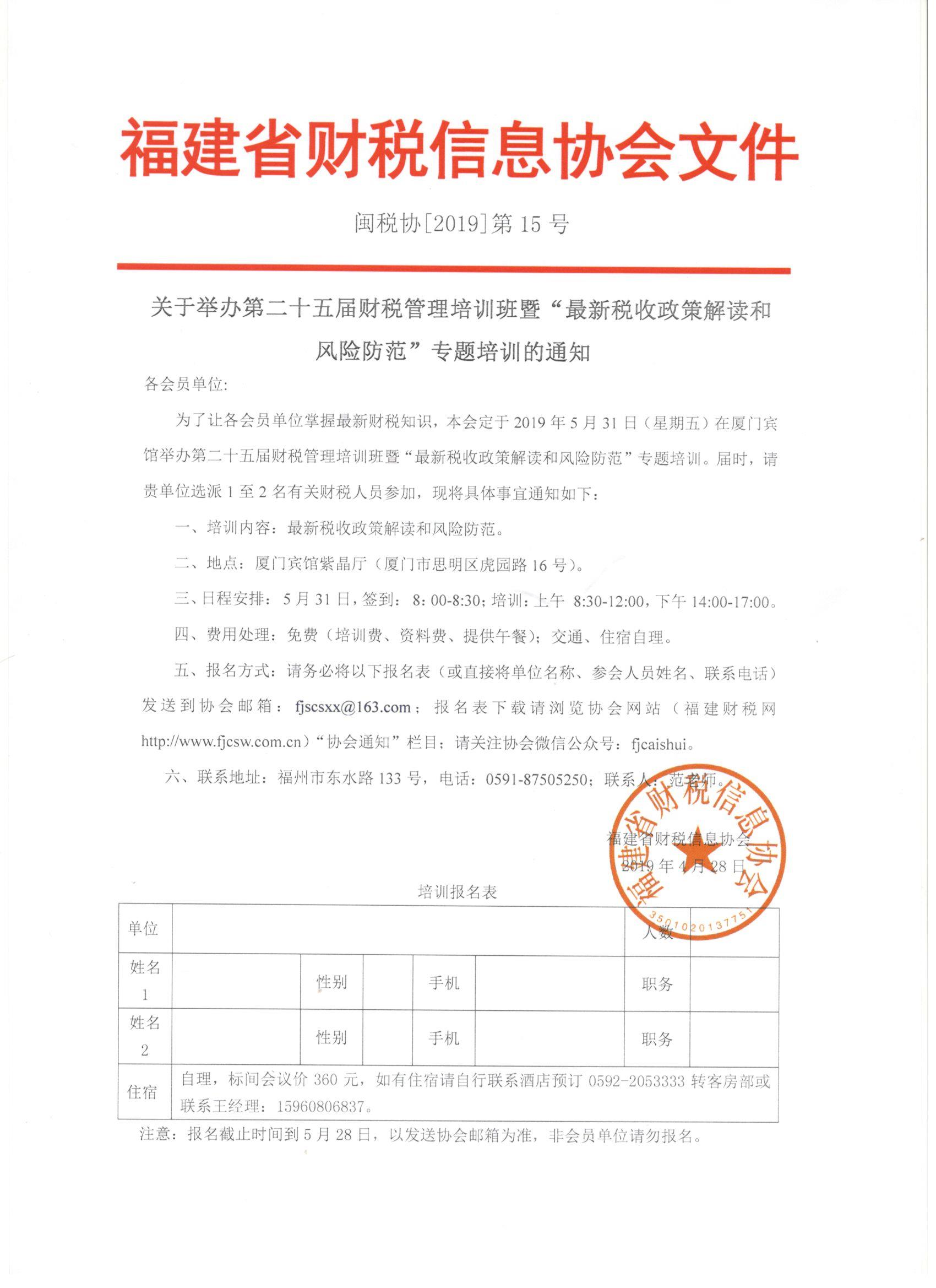 關(guān)于舉辦第二十五屆財稅管理培訓(xùn)班暨“最新稅收政策解讀和風(fēng)險防范”專題培訓(xùn)的通知