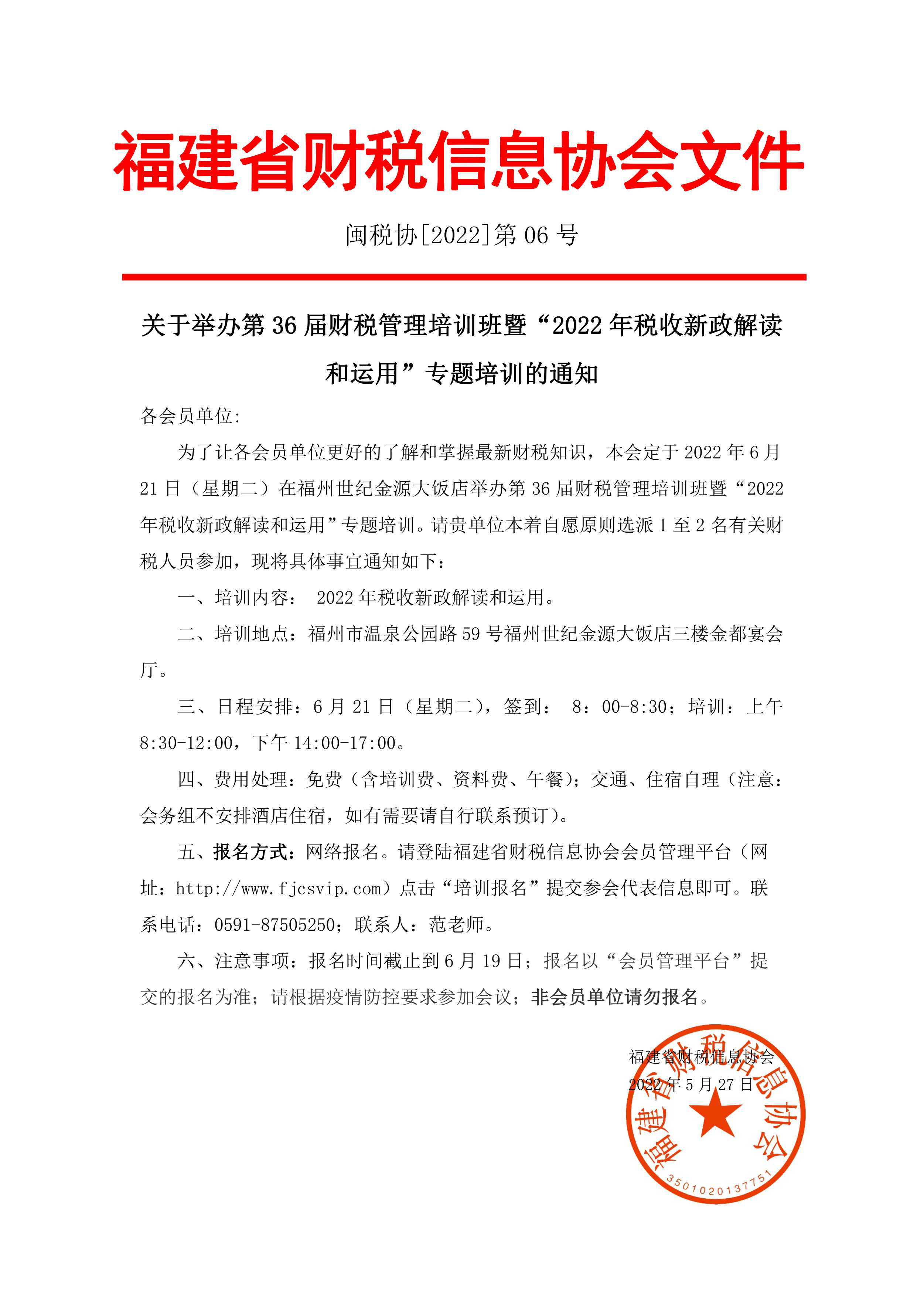 關(guān)于舉辦第36屆財(cái)稅管理培訓(xùn)班暨“2022年稅收新政解讀和運(yùn)用”專題培訓(xùn)的通知