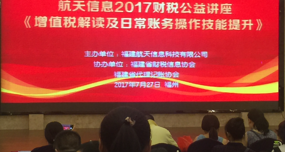 2017年7月22日,福建省財(cái)稅信息協(xié)會(huì)在福州錦頤大酒店與福建航天信息聯(lián)合舉辦“企業(yè)各環(huán)節(jié)常見(jiàn)財(cái)稅難點(diǎn)問(wèn)題及節(jié)稅技巧”專(zhuān)題培訓(xùn)。